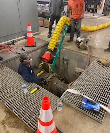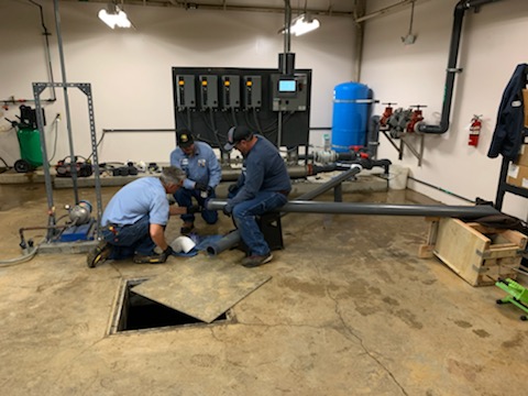 I am writing this late Sunday night, having just returned from the Water Treatment Plant. It has been a long difficult day for many of our staff there, many of whom responded around 3 a.m. this morning as the overnight operator noticed water begin to pour into the basement area of the plant, erupting from multiple locations in the concrete floor. It was determined that the water was likely coming from a break in the 24-inch backwash pipe that is located under the building, under the concrete floor. This pipe is critical to the water treatment process. We had to shut this pipe down. What that meant is we could no longer treat water, so the only treated water we could distribute was the water located in our water storage tanks. Staff quickly recognized the urgency of the situation and we did a partial activation of our Emergency Operations Center, bringing in a number of resources to address this problem. We began working on a temporary solution that would allow us to work around this line to treat water before our water reserves were depleted. At the same time staff also began work to determine what would be needed for a permanent fix. Ultimately, we determined, after careful consideration, that we would need to ask the community to reduce their water consumption to help us gain more time to make the fix to the 24-inch line. This evening the team, after three attempts, was able to construct a temporary solution to allow us to begin treating water. This has allowed us to begin to refill our depleted water reserves as of tonight. This temporary fix, combined with reduced water use in the city, enables City staff to have more time to work on a permanent fix to the backwash pipe. We deeply appreciate your patience and cooperation, which enables City staff to continue delivering water that is safe to drink. (Below are photos of staff working hard to resolve the problem.)