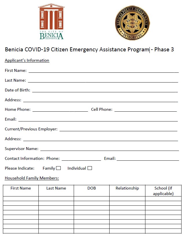 Benicia COVID-19 Citizen Emergency Assistance Program-Phase 3