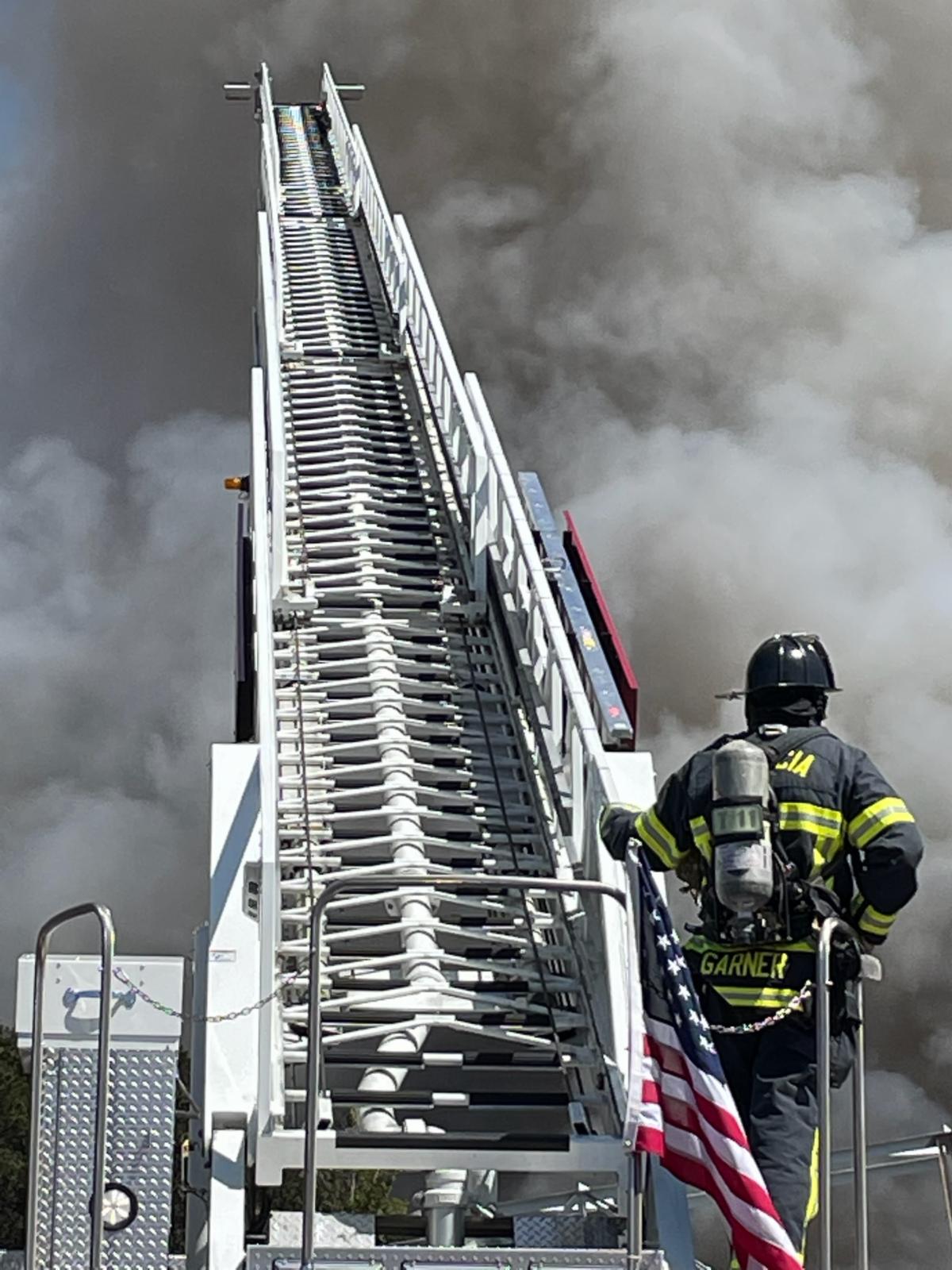 “The primary concern was the safety of the community,” said Chief Chadwick. “The biggest potential threat to the community was air quality. The smoke emitting from the fire contained particulate matter and the potential of toxicity from chemicals. We were fortunate in having continuous wind blowing from the west, allowing the smoke to blow towards the water and dissipate before impacting other populated areas.”