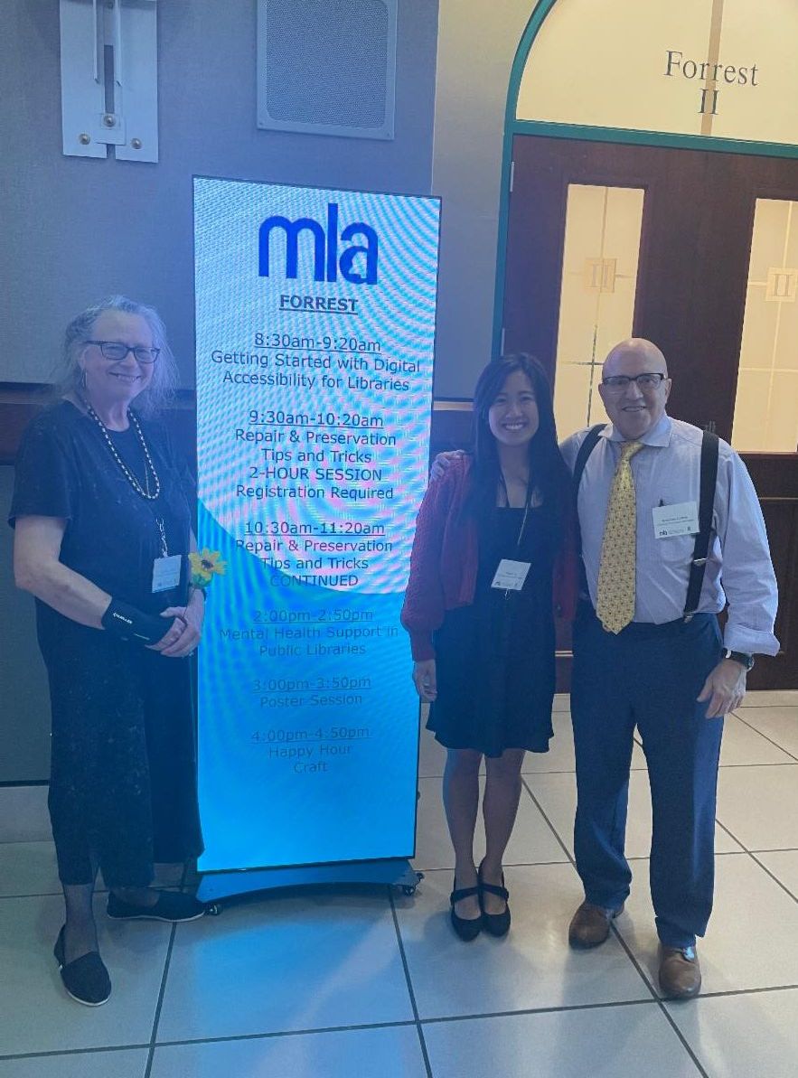 | | MISSISSIPPI LIBRARY ASSOCIATION | | Joyce Shaw, Megan Le, and Brennan Collins presented posters at the Mississippi Library Association Conference in Hattiesburg, MS on October 16th. One poster was a collaboration with the Marine Education Center (MEC) featuring a “Deep Water Ecology” bibliography for teenagers to young adults. The other poster featured a university library’s assistance for people with disabilities. | | |