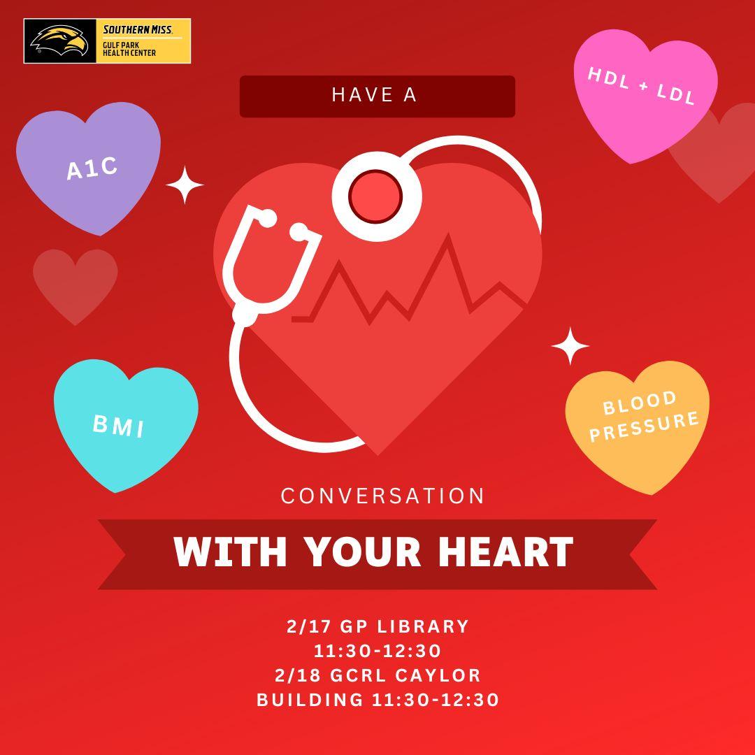 - Tuesday, February 18th, Have a Conversation with your Heart Workshop, 11:30-12:30 pm @ GCRL Caylor Building