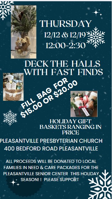 Find FAST Finds at the Pleasantville Presbyterian Church on December 19th to support and celebrate the holiday with charity!