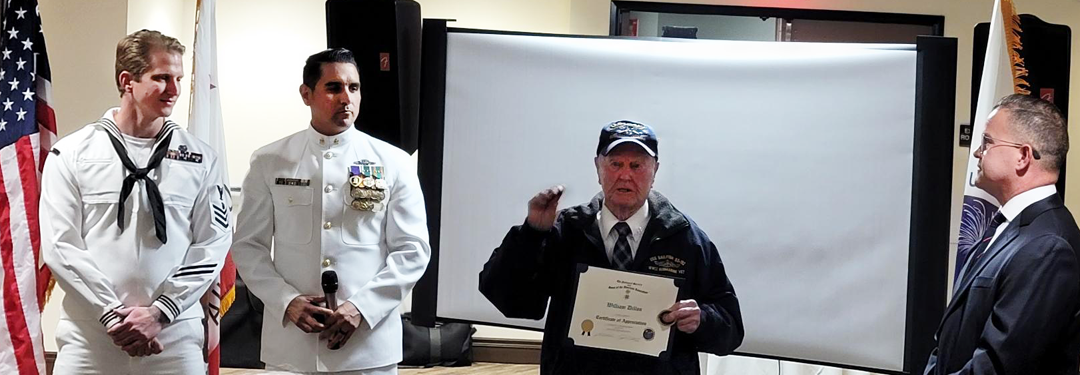 President James Bunker presented Mr. Dillon with a chapter certificate of appreciation and Harbor Chapter challenge coin, and the Navy representatives presented him tokens from the Diving Program.