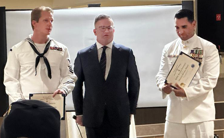 (L-R) Diver First Class Sean Connelly, President James Bunker,