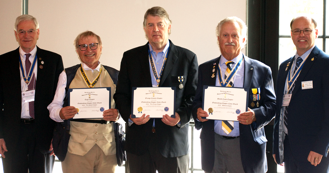 America 250 Gold Medals were presented to Dan McKelvie (Orange County), Don Littlefield (Sacramento Chapter) and Peter Fagan (san Diego Chapter) in recognition of their efforts and activity in planning and executing America 250 public events celebrating and promoting America's 250th Anniversary.
