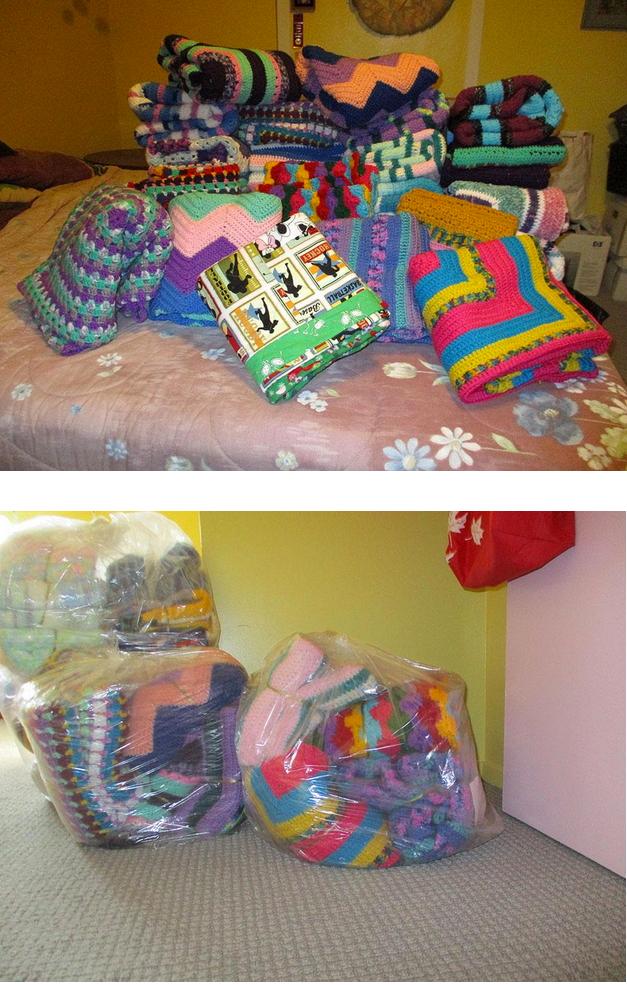 UPDATE: On Veteran’s Day, November11, 2020, Rachel Ferber and I presented 56 blankets and 89 t-shirt bags to Jamie Brocker, head of The ARK Food Pantry...