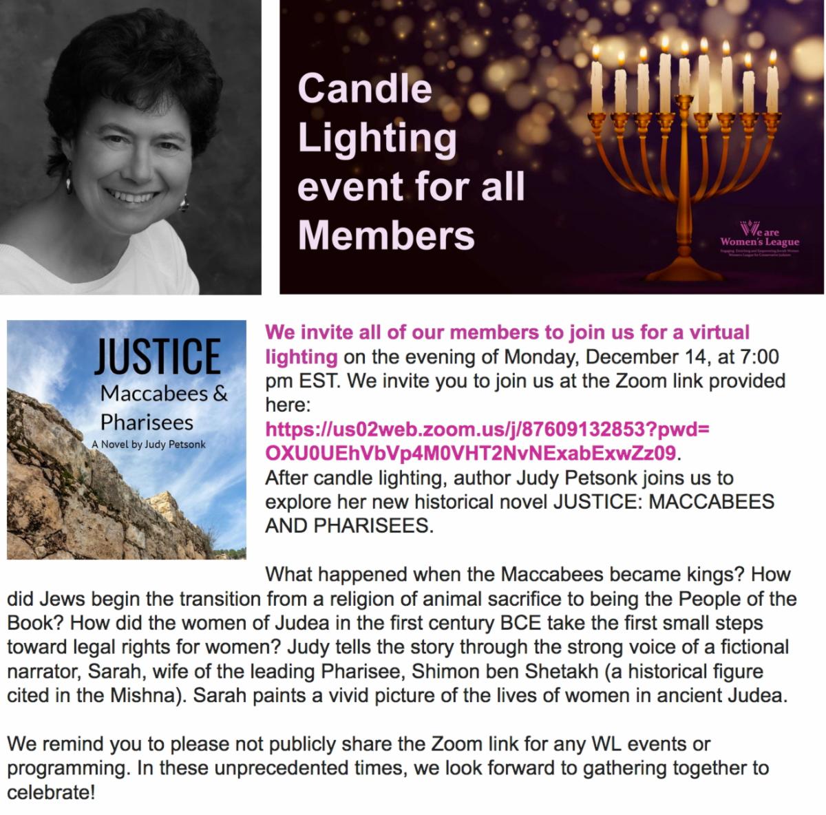Virtual Candle Lighting - December 14th @ 7 PM EST