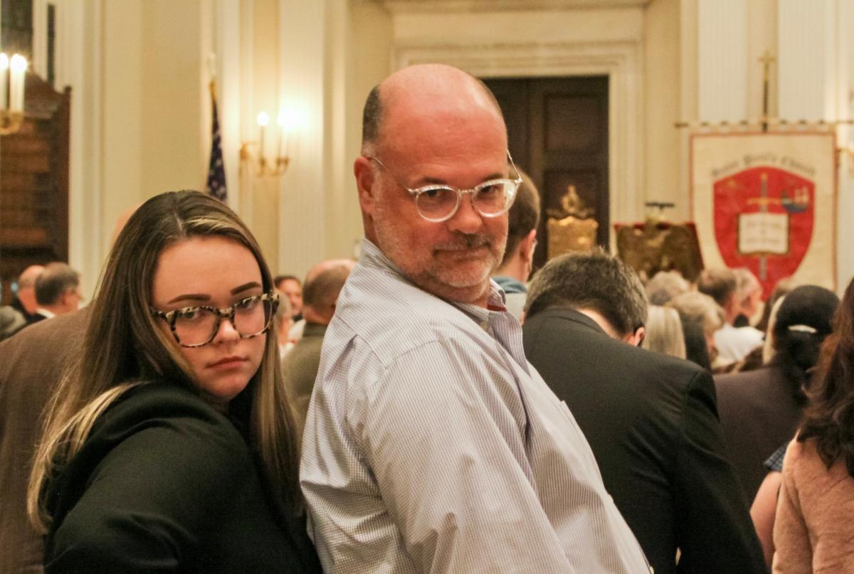 Executive Assistant to the Bishop, Maggie Lyons, and Honey Creek Executive Director Dade Brantley, give Communications Manager Liz William a look when she wanted to take their picture before the Convention Eucharist at Saint Paul's. | | | | |