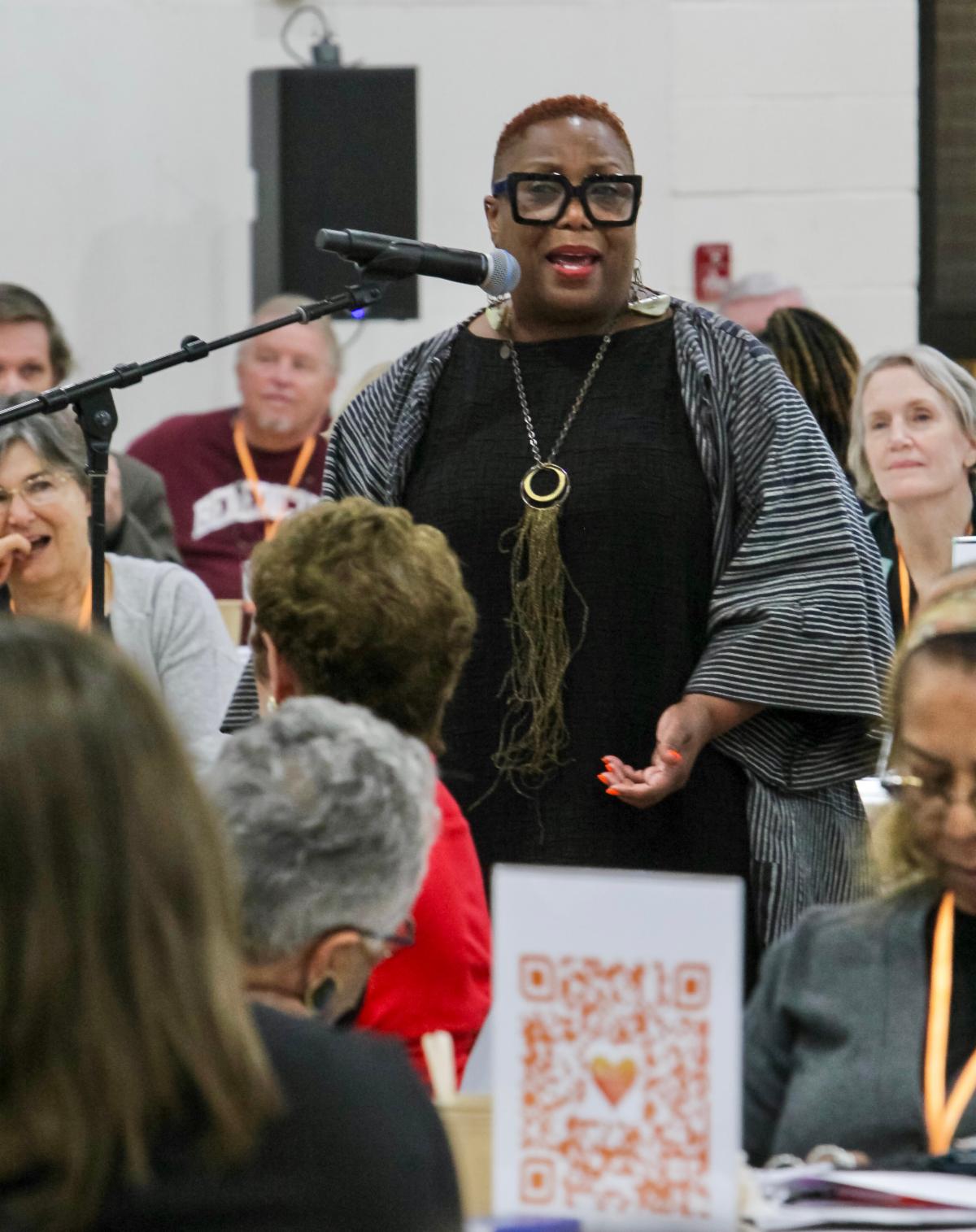 Shannon Pojedinec, Senior Warden of St. Andrew's in Douglas, speaks to the convention during debate. She captured delegates answering the question "What does it mean to be an Episcopalian?" She shared the videos on the congregation's Facebook page: What does it mean to be an Episcopalian Videos | |