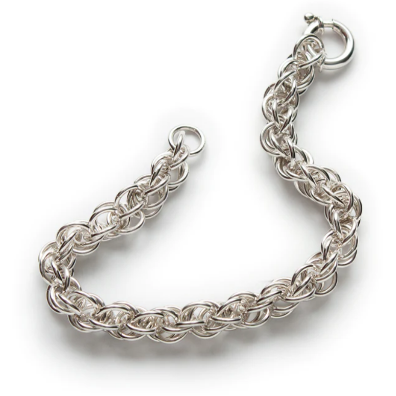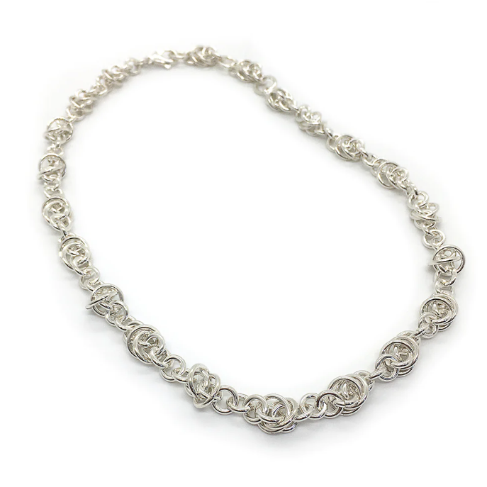 It is with great pleasure that we welcome back jewellery artist Lisa Ridout to the gallery. Lisa has been designing and creating her unique line of mostly sterling silver chainmaille jewellery for over 30 years.