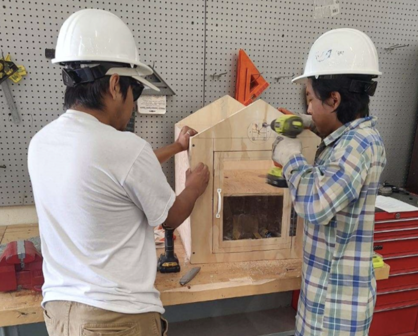Pictured: Students in the Pre-Apprenticeship Program build a tiny library for Treasure Coast Community Health.