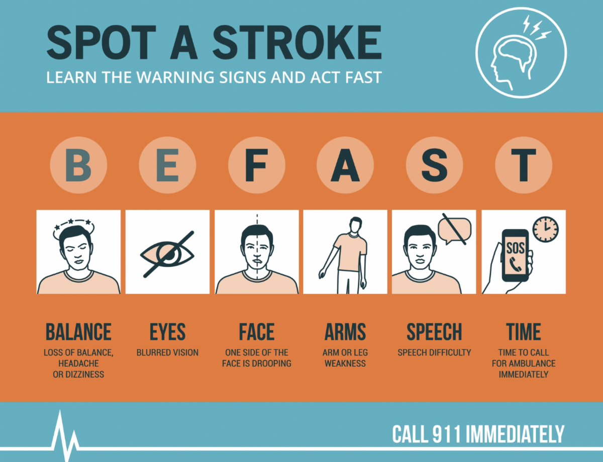 The acronym traditionally used to help people remember stroke symptoms is FAST (face, arms, speech, and time). More recently, medical experts have expanded that to BE FAST, with the additions of balance and eyes. The BE stands for: