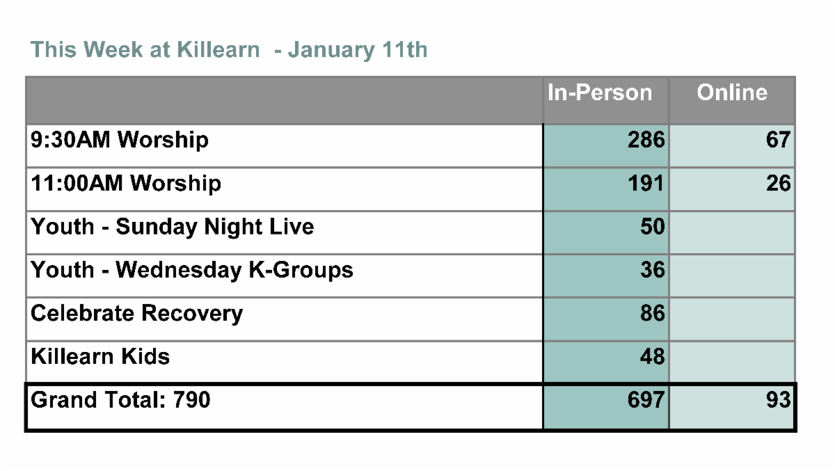 • Learn practical ways to stay connected and involved in what God is doing through the men of Killearn