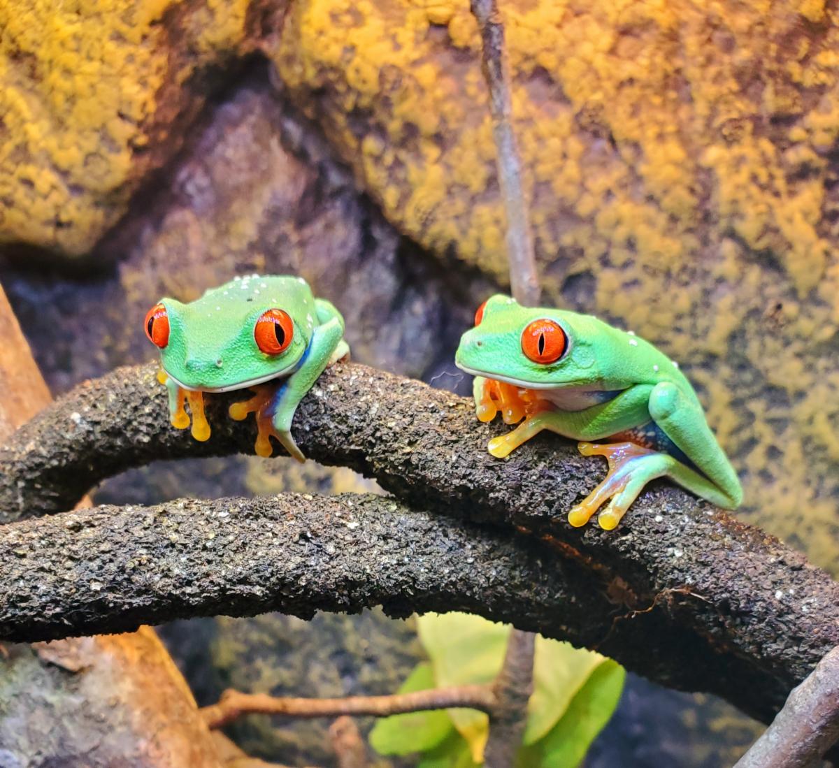 Improvements continue in the Rainforest Classroom where two new recent additions are on display. Five red-eyed tree frogs and five blue & black poison dart frogs. Both groups are of young frogs that were captive bred at the Dallas Zoo.