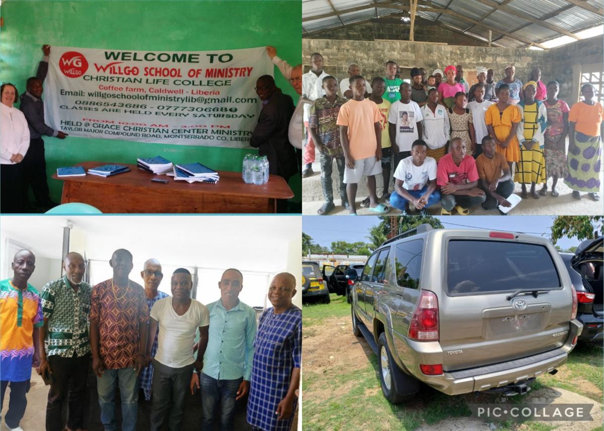 Top right photo is our certificate students in Mendstown. Our ministry pastor teachers (some of them are in the bottom left photo) travel between these sites to teach Bachelor of Arts, Associate of Arts and Certificate students. The vehicle we bought four years ago is no longer working and we urgently need a replacement vehicle to help transport teachers and ministry supplies for our quarterly student evangelistic outreaches too. A second hand 7-10 years SUV will cost USD15,000-USD18,000-. We appreciate your prayer and support!