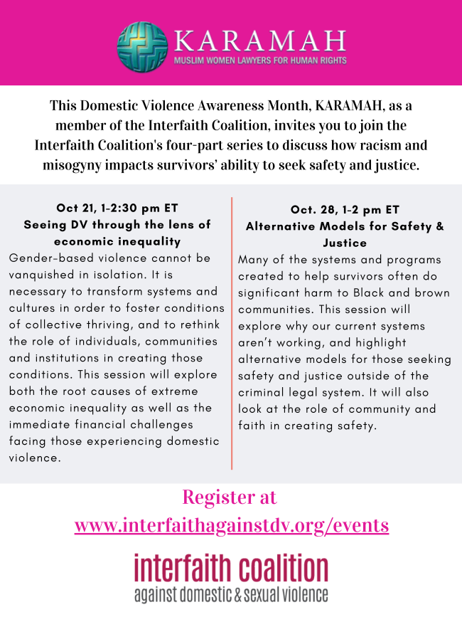 With the current restrictions on travel, we are staying busy with virtual programming. Please make sure you are following us on social media to keep up with us! We are part of the Interfaith Coalition against Domestic Violence that is hosting a 4 week series during October for Domestic Violence Awareness Month. I am presenting a 4 week series on Racism for the ADAMS Center. We are ready to finish out this year strong even if we are in quarantine.