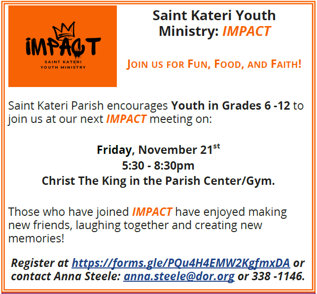 OCIA: This process is for anyone over the age of 16 that wants to become fully initiated into the faith of the Catholic Church through the sacraments of Baptism, First Communion, Confirmation or any combination of the three. Contact Mark Keller mark.keller@dor.org