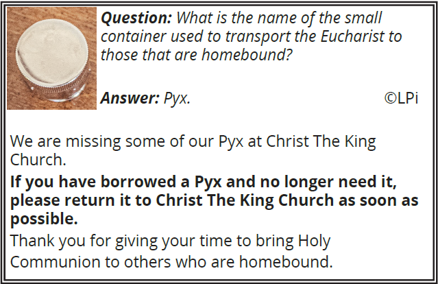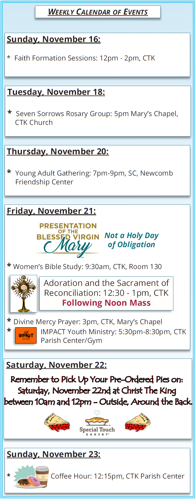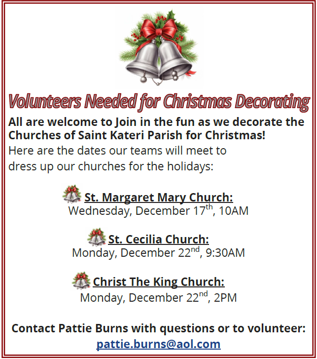 Confirmation: A two-year journey for those in Grade 8 and older to prepare for the Sacrament of Confirmation.