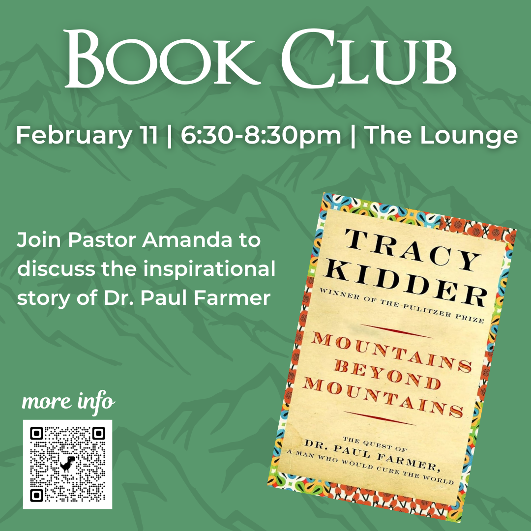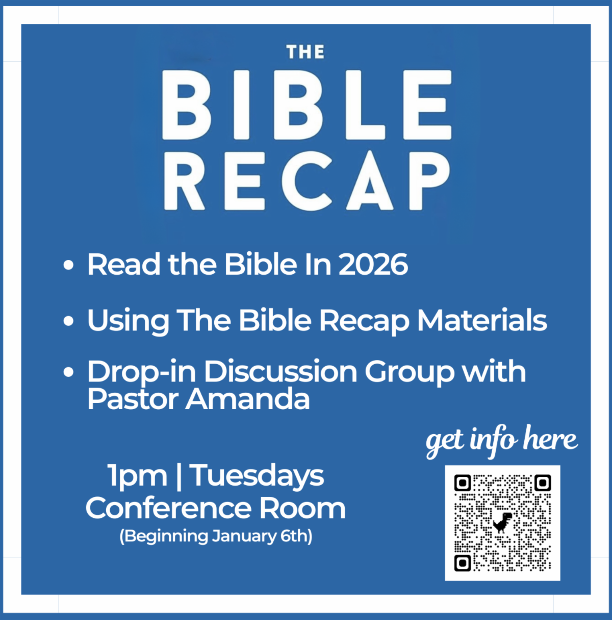 Scroll down just past the 2026 Header for QR codes to sign up for The Bible Recap reading group and Mountains Beyond Mountains Book Club.