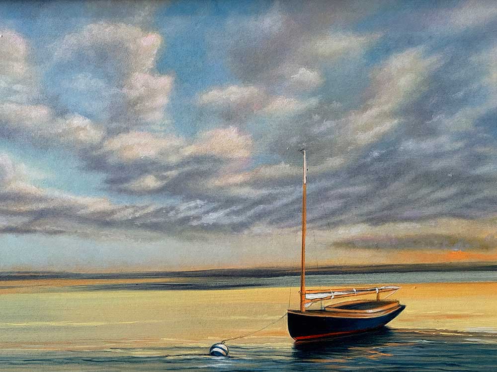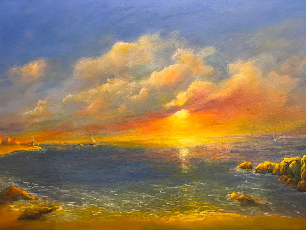 The featured piece for June is "Gentle Ripples" by Mireille Duchesne. It's a 36" x 48" seascape in oil, priced at $3,500.