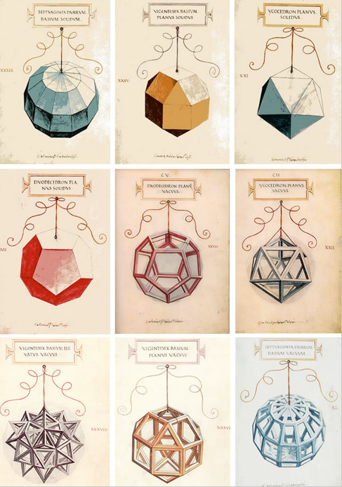 de Divina Proportione" of 1509, he discussed the "golden proportion" and the properties of various polyhedra. Pacioli was fascinated by polyhedra, (and really, who isn't?) studied their properties, and constructed wooden models for many of the solids.