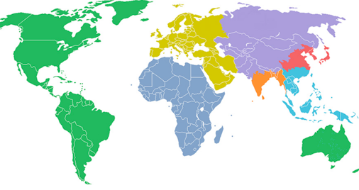 This is one version of dividing the world's 7-billion people into 7 geographical regions. Big surprise for us was Indonesia!