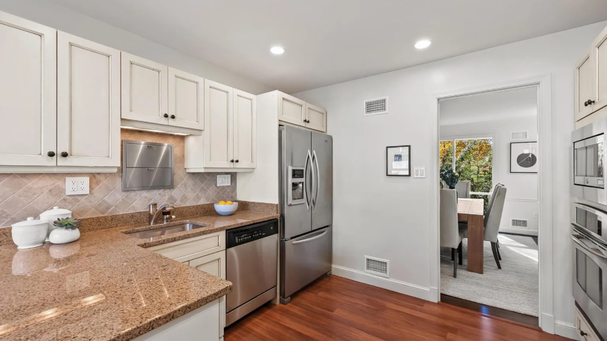 | The main living area offers the perfect spot to unwind — whether it's a quiet morning read or a relaxed chat with friends. Just across the way, the modern kitchen boasts sleek granite countertops and opens seamlessly into both the formal dining room and the cozy breakfast area, creating a warm, inviting space that works beautifully for everything from intimate meals to lively family gatherings. | Down the hallway on the main level, you’ll find three spacious bedrooms and two luxuriously appointed bathrooms, including a primary suite that feels like a retreat with its spa-inspired ensuite. | Heading downstairs, the lower level is bright and open by design. High ceilings draw your eye upward, while a large recreation room with a white brick hearth and wood-burning fireplace offers warmth and character. French doors open out to a private backyard oasis, making it easy to bring the indoors out. There’s also a fourth bedroom, a full luxury bath, and a flexible space that could serve as a home office, gym, or a fifth bedroom. | |