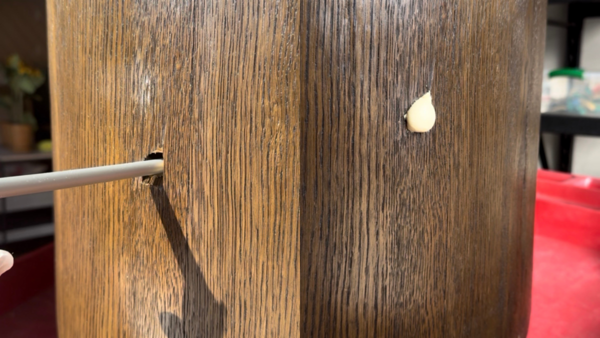 The punctured or damaged area is color-matched to the original finish, sanded smooth, and meticulously detailed to blend seamlessly. Check out the final result!