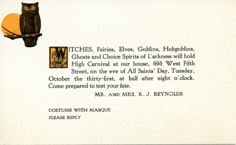 The Reynolds family transformed their Victorian home on Fifth Street in Winston-Salem into a perfectly spooky milieu to celebrate All Hallows' Eve. The celebration was held every year, not just in 1916. R.J. and Katharine's younger daughter Nancy Susan Reynolds recalls Halloween when she was young: