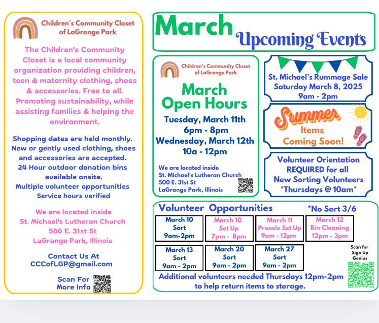 -Spring Clothing and Textile Take-Back: March 16th, 2025 (St. Michael's Lutheran Church)