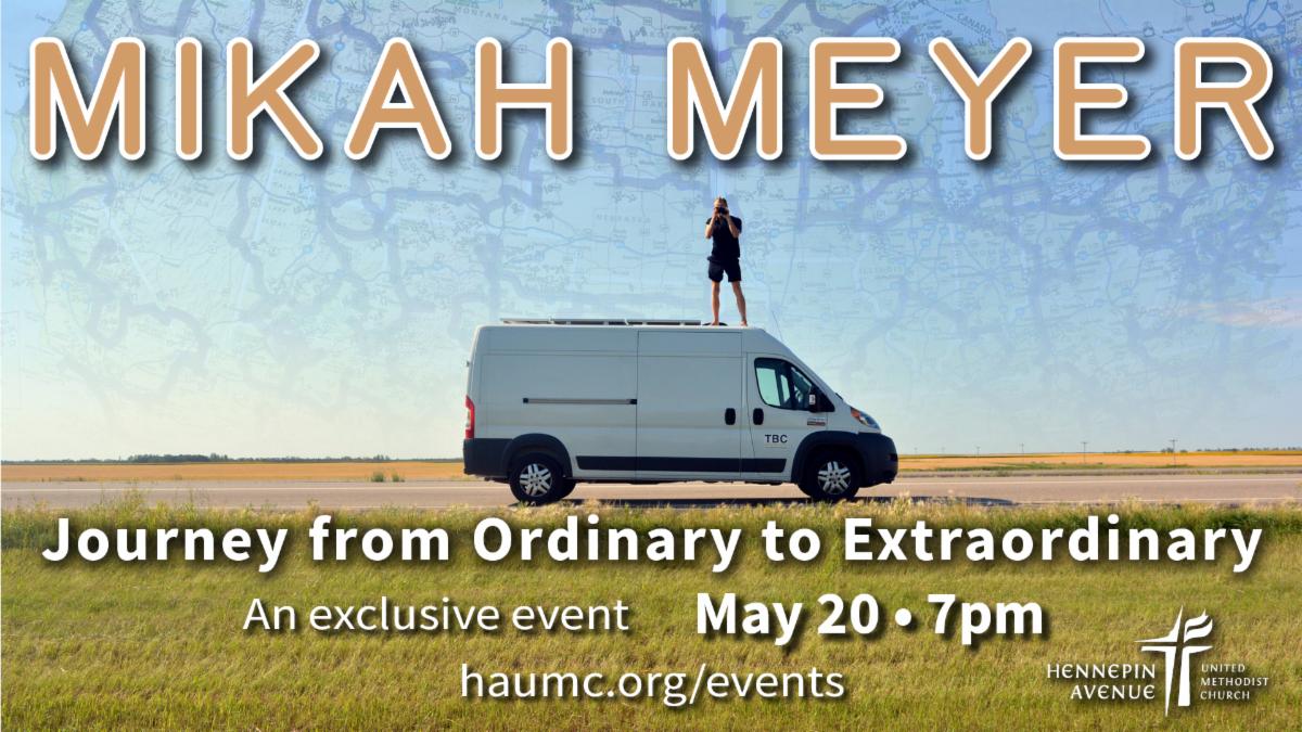 On May 20, 7pm, Mikah will present “A Journey from Ordinary to Extraordinary,” in the Sanctuary.