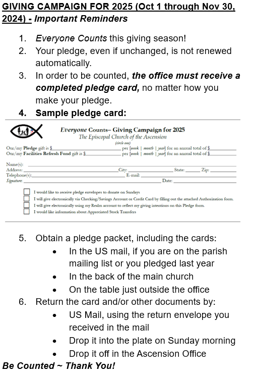 The Vestry serves three-year terms and meets monthly, primarily via Zoom, with four in-person meetings each year. Members are also expected to attend the Annual Meeting and quarterly Parish Council meetings. It's a rewarding opportunity! For questions or nominations, contact Kristen Keating (kkeating125@comcast.net), Ruth Anna Skowronski (ruth.skowronski@gmail.com), or Shirley Allen (shirleyeallen@msn.com) quickly since we have already passed the cut-off date