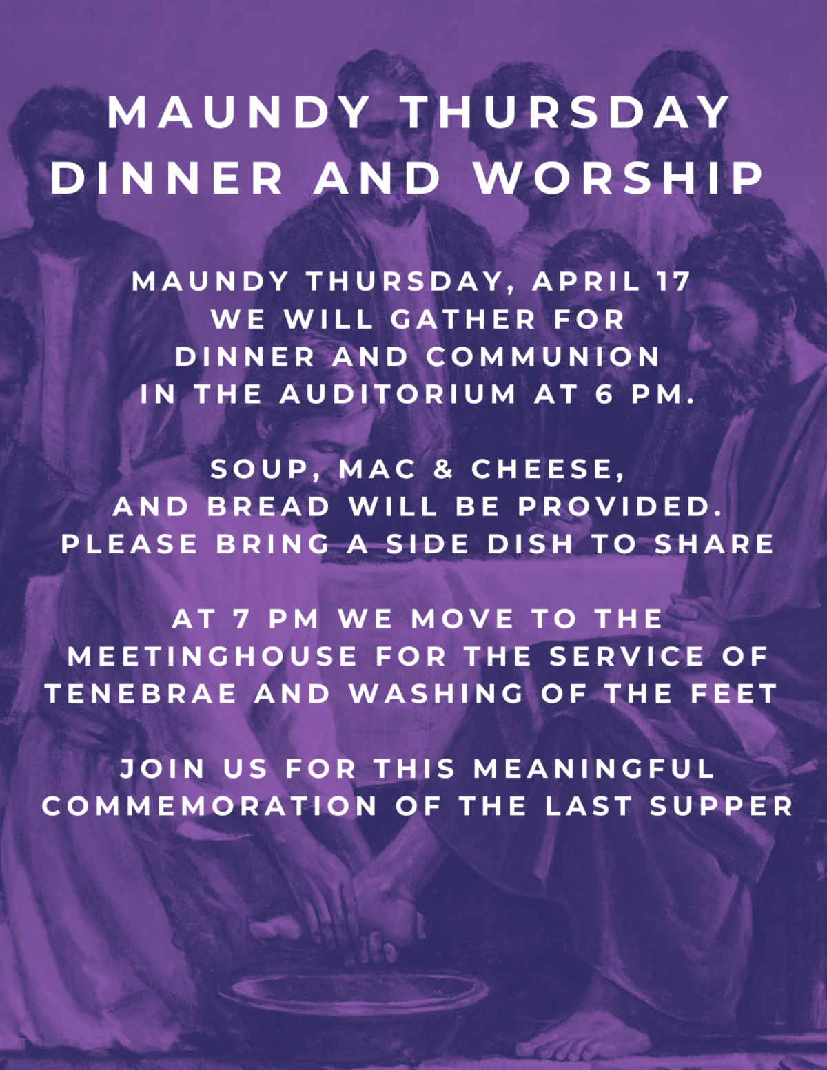 | | MAUNDY THURSDAY DINNER AND WORSHIP | | SEDER MEAL INVITATION TO TEMPLE SHOLOM | | |