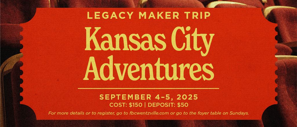 Join us for the Legacy Maker Kansas City Adventure on Sept. 4–5! The trip includes motor coach transportation, a one-night stay at Drury Inn & Suites, dinner, and a performance of “Clue” on Stage at the New Theatre, and free time at Union Station. The cost is $150 with a $50 deposit. Register here or at the foyer table on Sundays.