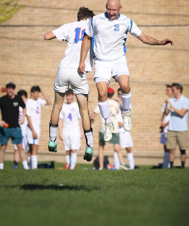 (Pictured here: sophomore Caleb Shpayher and senior Yair Bell after Caleb scored a goal against North Chicago)