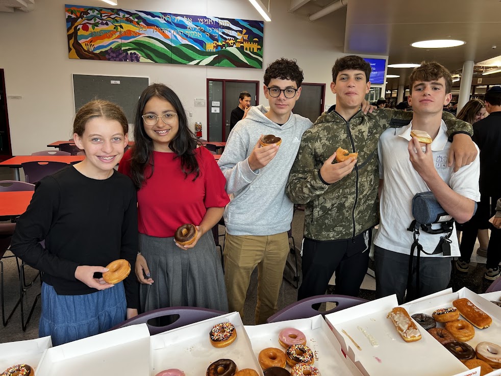 On Wednesday morning, the entire ICJA community came together for all school davening in the gym, followed by a siyum on Masechet Avodah Zara, then a celebratory doughnut breakfast.