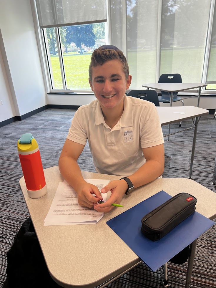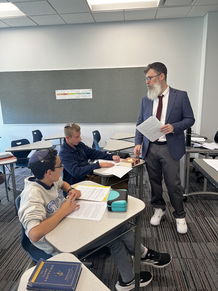 | | Dov Finkel working on his essays | | Shulamit Stopek writing about The Last Lecture | | Jacob Leonard and Ayden Frankel with Mr. Kramer | | Mrs. Moria Kohanchi's 11th Grade Boys' Hebrew Class | | Juniors created dialogues in Hebrew. | | |