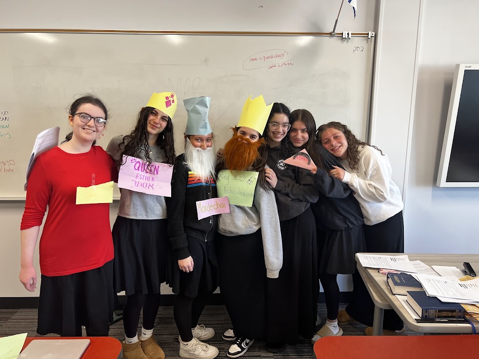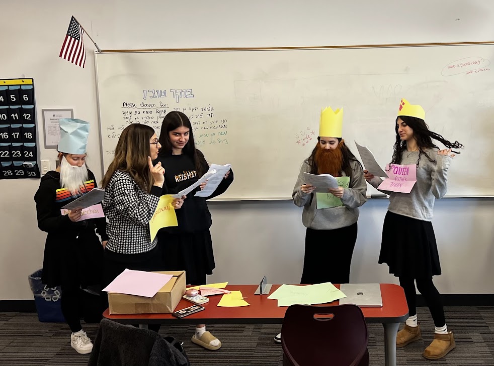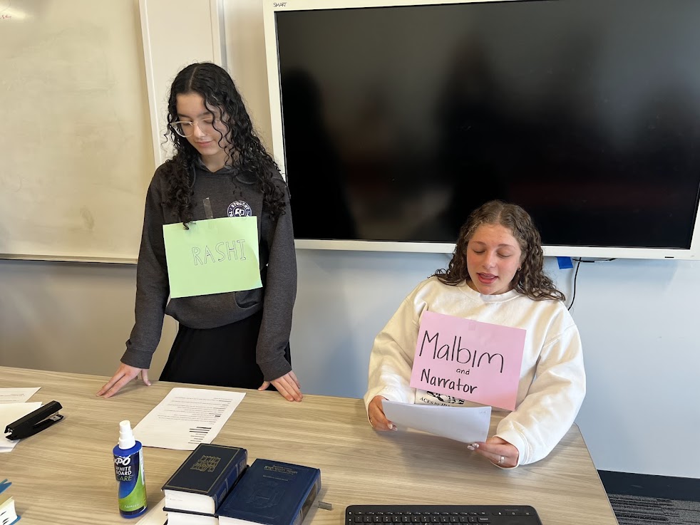 Freshmen in Mrs. Alissa Zeffren's honors Navi class have been learning Megillat Esther with Rashi and Malbim. On Thursday this week, they put on a Purim play for students in in other classes with a twist - Rashi and Malbim were two of the characters, contributing their insights throughout the play.