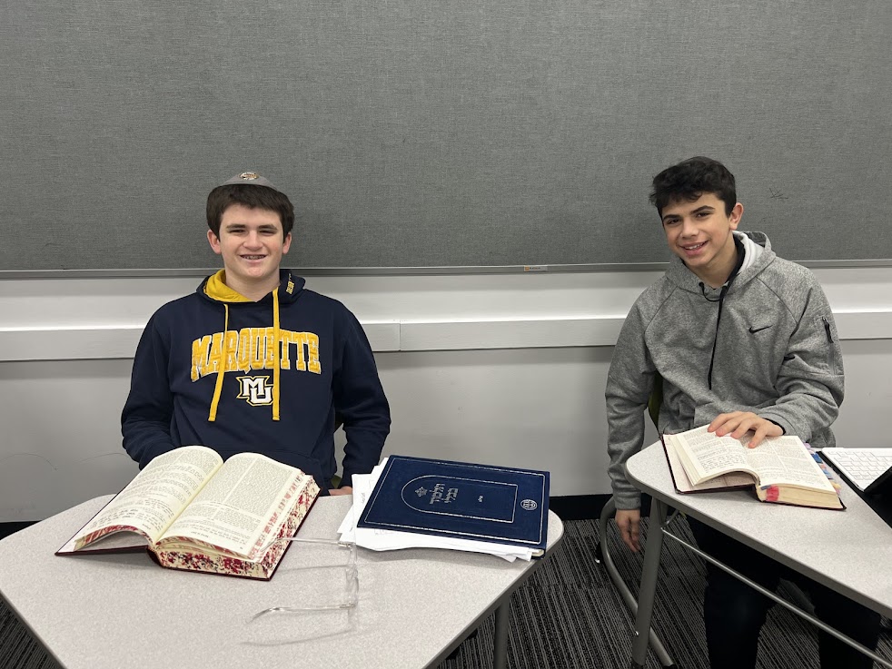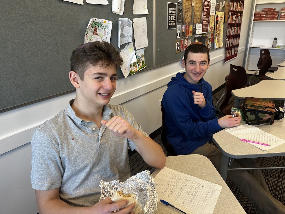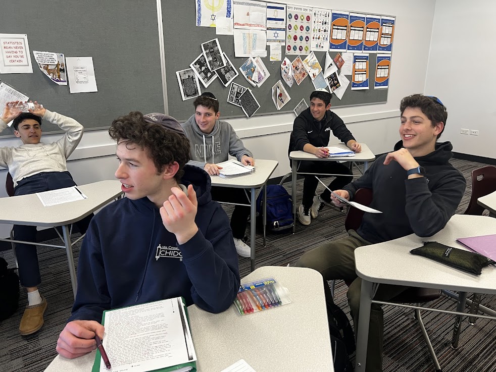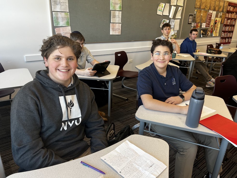 | | Pictured above: club president freshman Zachary Kupietzy and freshman Bennett Kroll | | Pictured above: freshmen Dahlia Osgood and Emily Adler | | Pictured above: faculty advisor Mrs. Marsha Arons during the meeting | | Rabbi Binyomin Segal's 10th Grade Chumash Class | | Students are learning about Birkat Cohanim. | | Sophomores in Rabbi Binyomin Segal's Chumash class are learning Sefer Bamidbar. This week, they read and discussed Hashem's instruction to Aharon to bless the Jewish people in Numbers 6:22-27, the Birkat Cohanim. | | Pictured above: Ryan Angus | | Pictured above: Ami Appel and Jacob Ackerman | | Pictured above: Noah Ehrlich reading aloud in class | | Mrs. Beth Pogonitz's 11th Grade Girls' Navi Class | | Students educated their peers with creative presentations about freedom and Yirmiyahu. | | |