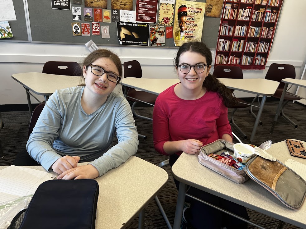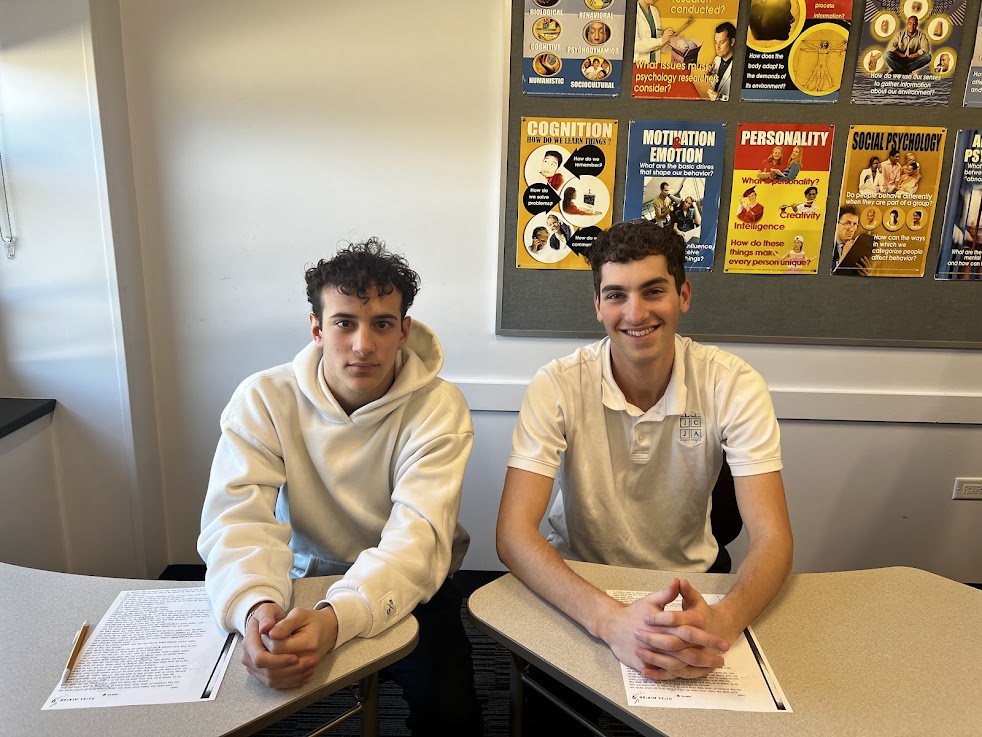 (Pictured here: club members frehmen Ari Shyovitz and Menachem Steinberg during the lunchtime meeting)