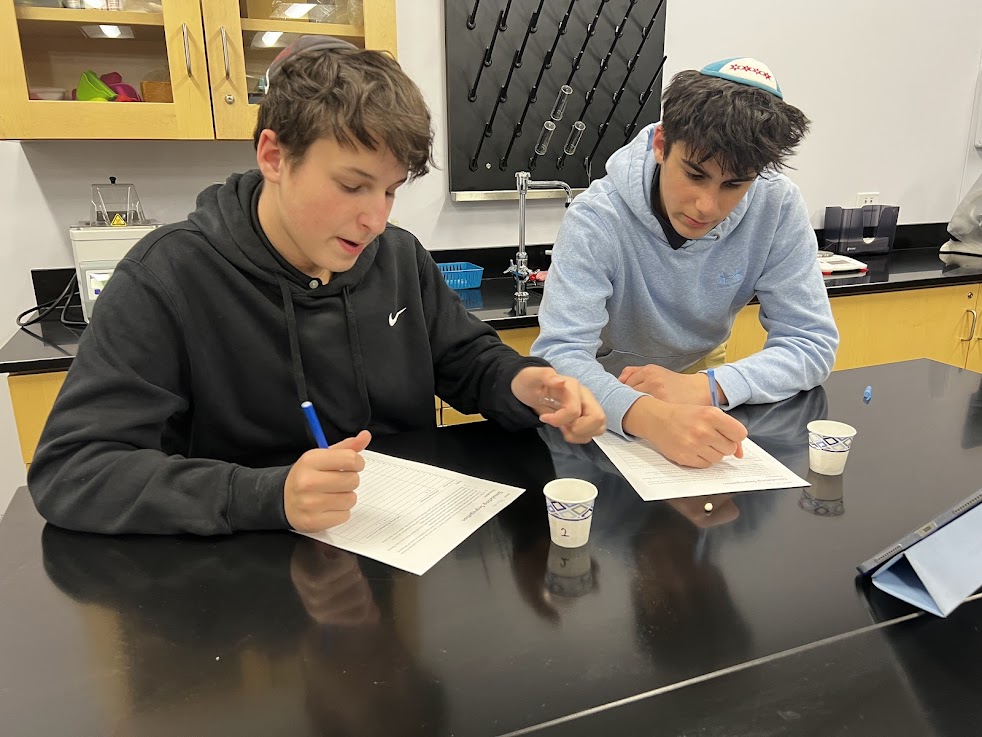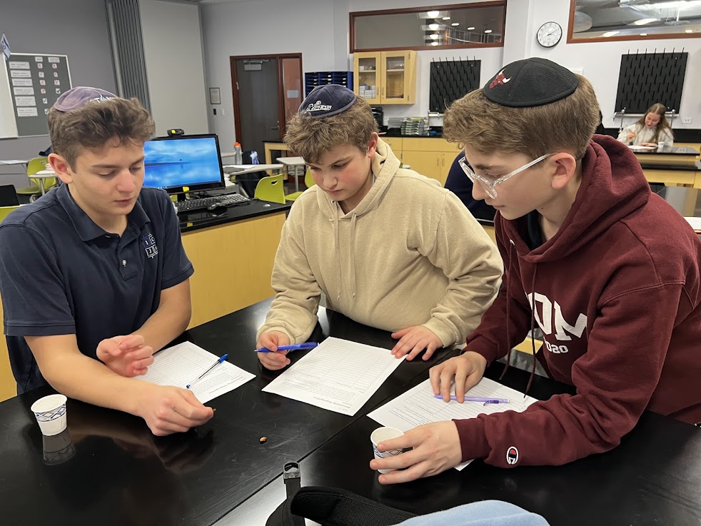 | | Pictured above: Esther Meyerson discussing the ways in which Yirmiyahu's life of service took away personal freedoms from him in order to empower him to serve Hashem | | Pictured above: Channie Gelerinter showing an item she crocheted, drawing a parallel with Israeli prisoner Agam Berger, who braided hair in captivity, and discussing how freedom to pursue one's own project is a form of freedom | | Pictured above: Mia Weiss and Lily Douek discussing ways that different Disney movie plots can be interpreted as bids for personal empowerment and freedom | | Mr. Peter Sahyouni's 9th Grade Biology Class | | Students experimented with Genotypes and Phenotypes. | | |