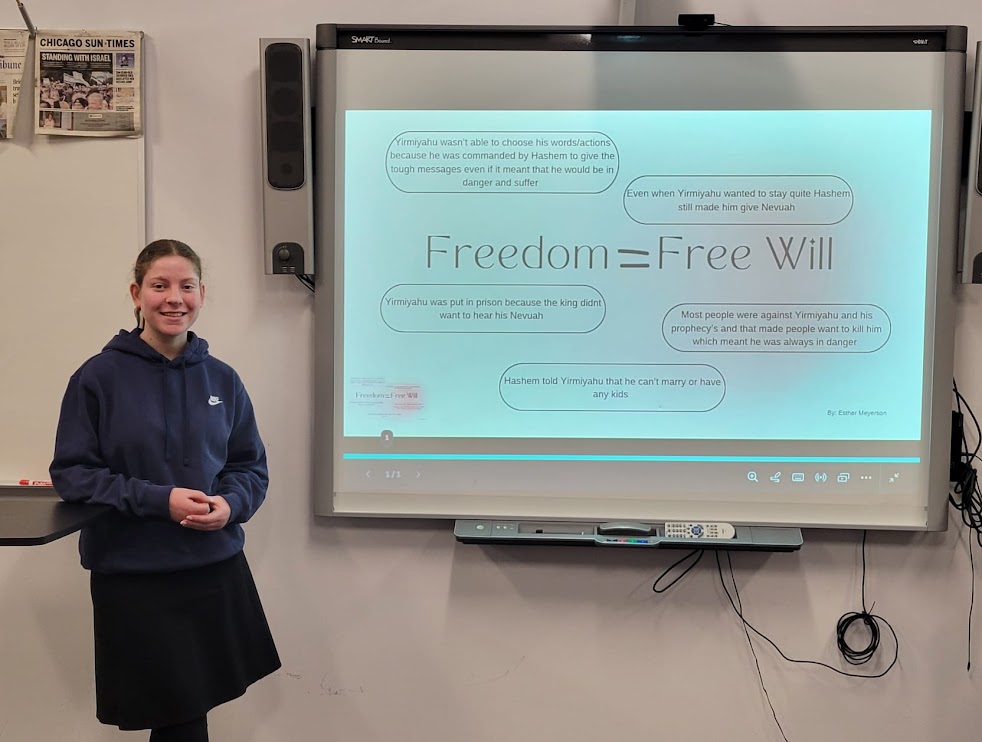 Juniors in Mrs. Beth Pogonitz's Navi class are learning about the prophet Yirmiyahu's life and actions. This week they presented the results of individual research about different aspects of the concept of freedom in Yirmiyahu's life.