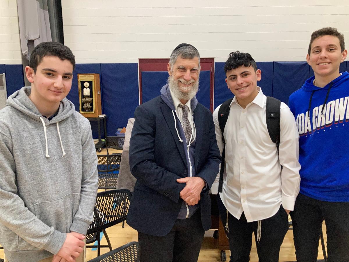 Pictured with Rabbi Teller after his talk (below): junior Sam Gurvich, senior Gavriel Engel and junior Josh Felix