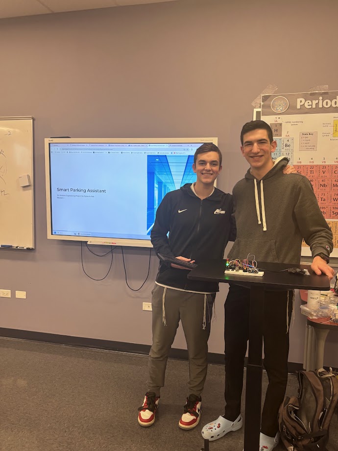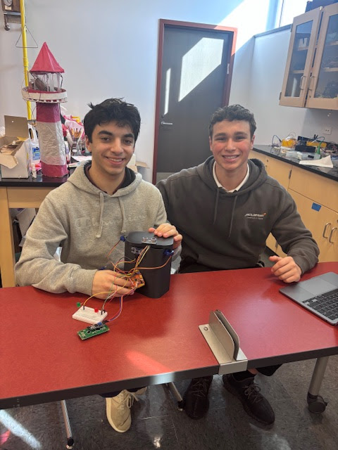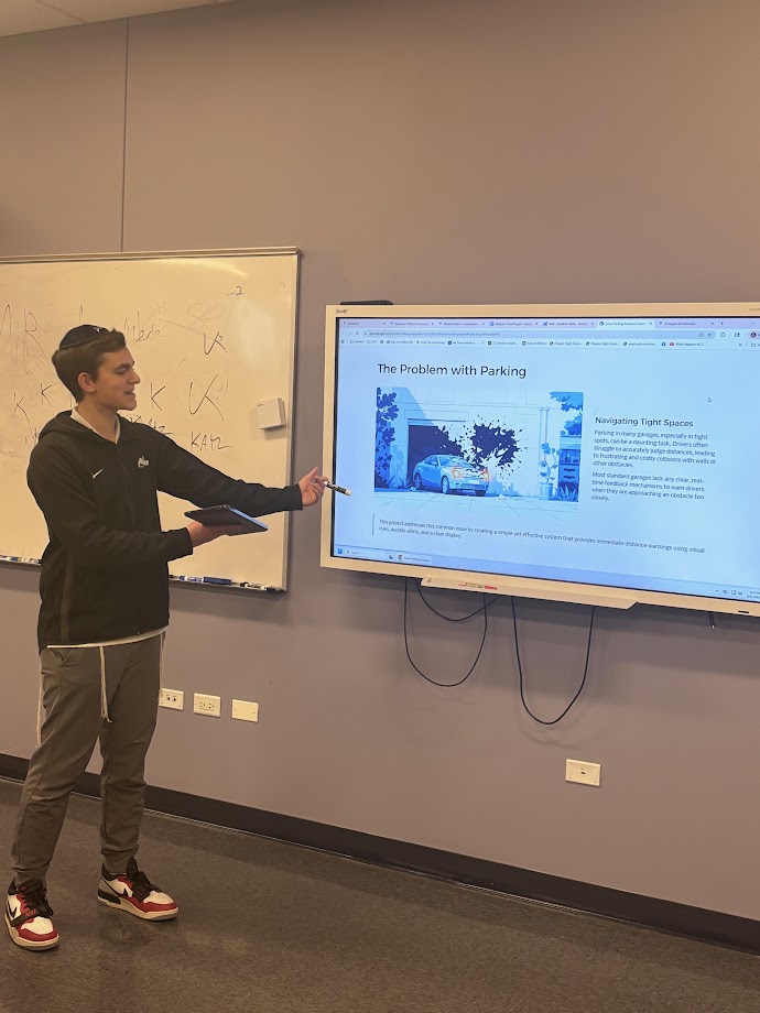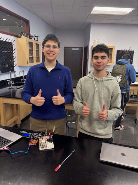 | | Pictured above: Levi Weiss | | Pictured above: Asher Gelerinter | | Pictured above: Eli Saltzman | | Mr. Jonathan Keller's Honors STEM Class | | Seniors created complex electronic items to aid in everyday tasks. | | |
