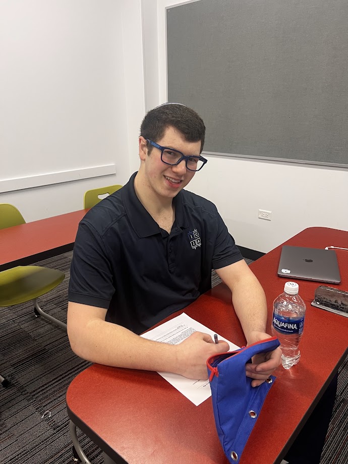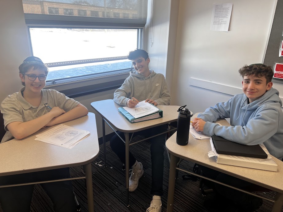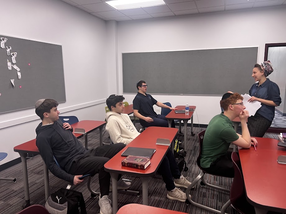 | | Pictured above: Bennett Kroll | | Pictured above: Shmuel Scharman | | Pictured above: Yair Dreytser, Lior Kirschner, and Yaakov Lehrfield | | Mrs. Shira Jacobs's 12th Grade Boys' Chumash Class | | Students discussed Ramban's observations about the life of Avraham. | | |