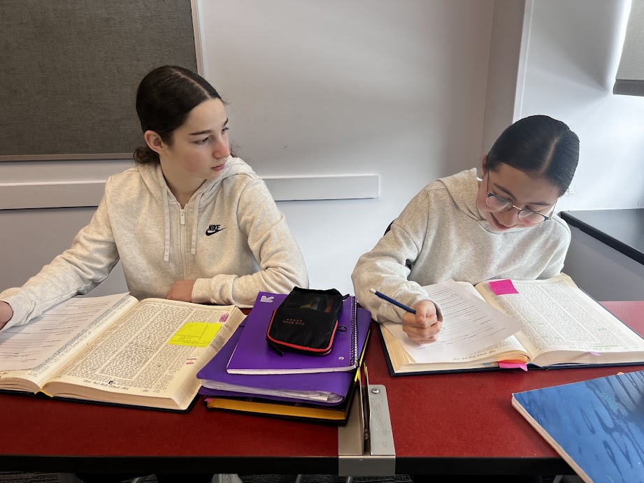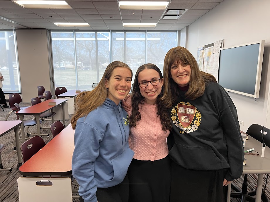 Pictured here: juniors Ariella Titievsky and Sarah Leonard with Mrs. Jaffe