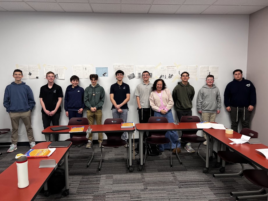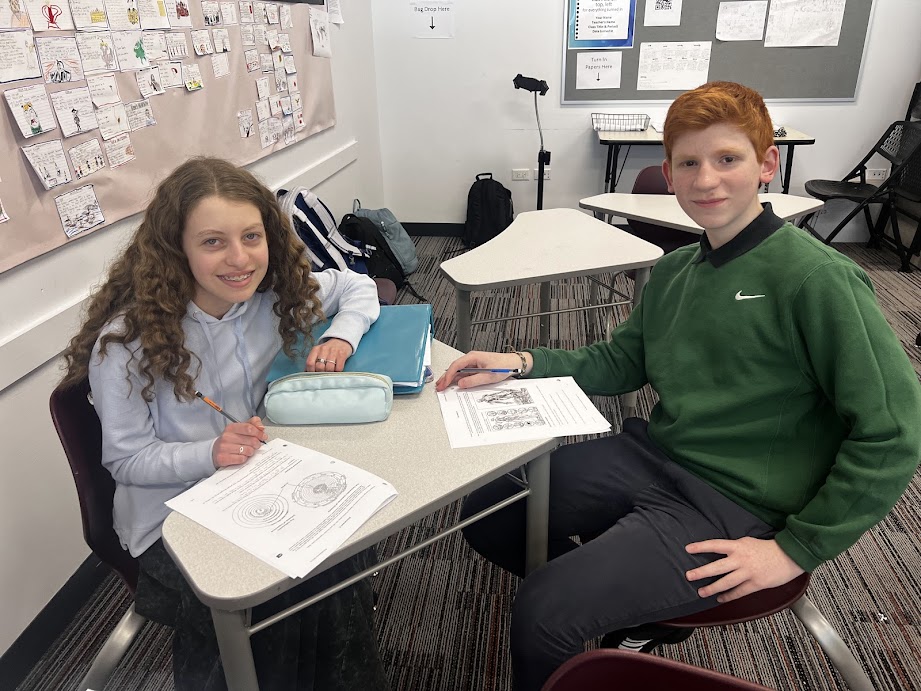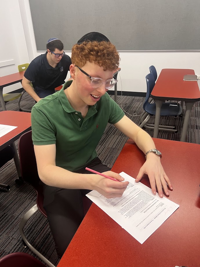 | | Pictured above: Elie Cherney | | Pictured above: Noah Lehrfield | | Pictured above: Boaz Stopek | | Mrs. Rachel Polsky's 9th Grade World History Class | | Students read original texts and discussed changes in thinking during the Renaissance period. | | |