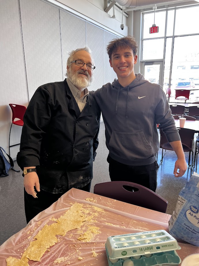 Rabbi Segal taught students how to make authentic Italian pasta dough with flour, salt, eggs, and water. Students formed their own pasta, then dried it to cook later.