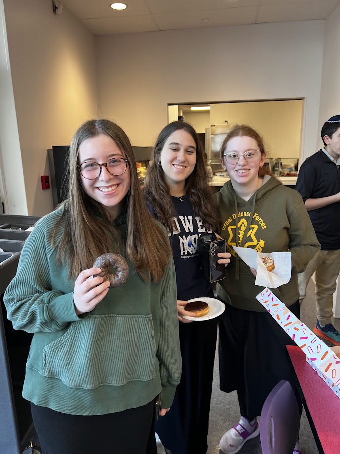 | | Pictured above: Mr. Craig Darlow and Sophie Darlow with Rabbi Mayer Simcha Stromer | | Pictured above: Sophie Darlow during the event | | Pictured above: Rabbi Brand discussing the morning's topic with students | | Students celebrated Rosh Chodesh Nisan this week. | | On Thursday this week, students celebrated Rosh Chodesh Nisan with special all-school davening, followed by candy generously sponsored by Malkie and Yechiel Mashiach, and doughnuts! It was a sweet way to start this new month - thank you to the Mashiach family for making it even sweeter. | |