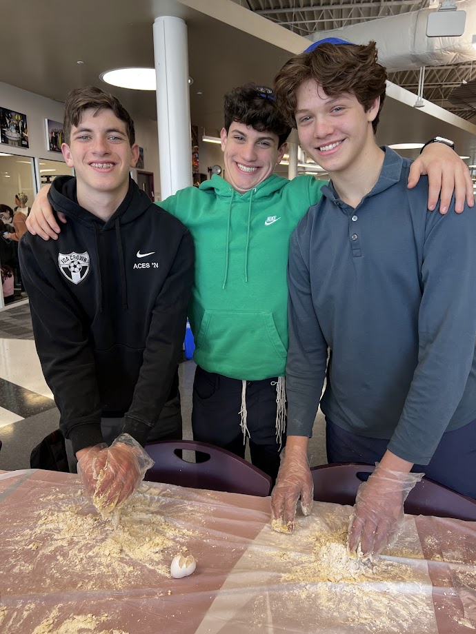 Sophomores in Rabbi Binyomin Segal's Chumash class marked Rosh Chodesh Nisan by "using up" their flour by making hand-made pasta.